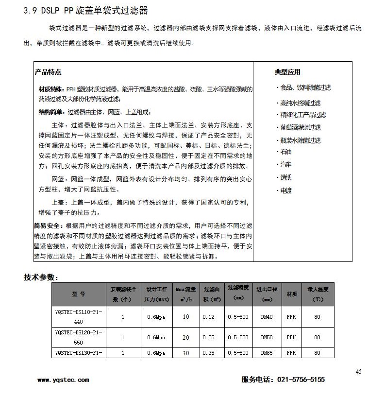 袋式過(guò)濾器使用說(shuō)明書(shū);