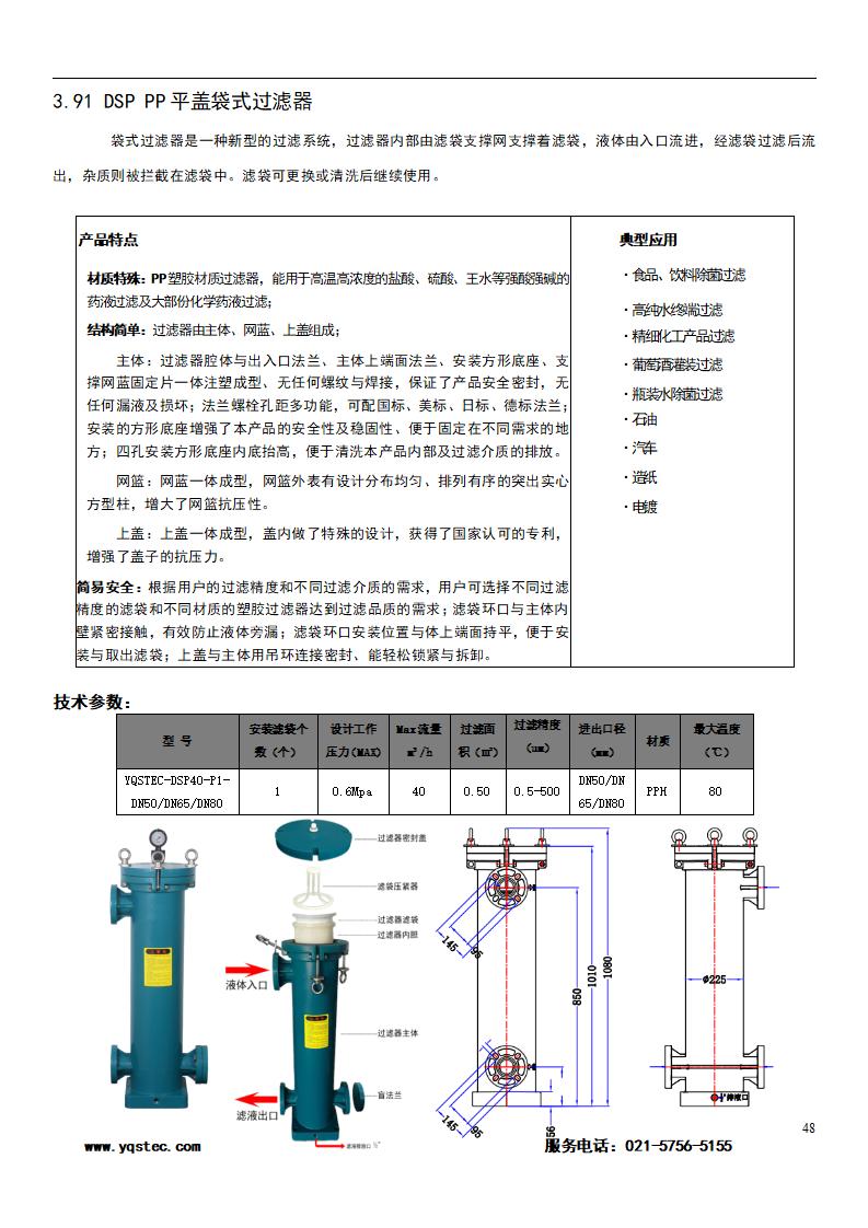 DSD40P-聚丙烯PP頂入單袋式過濾器