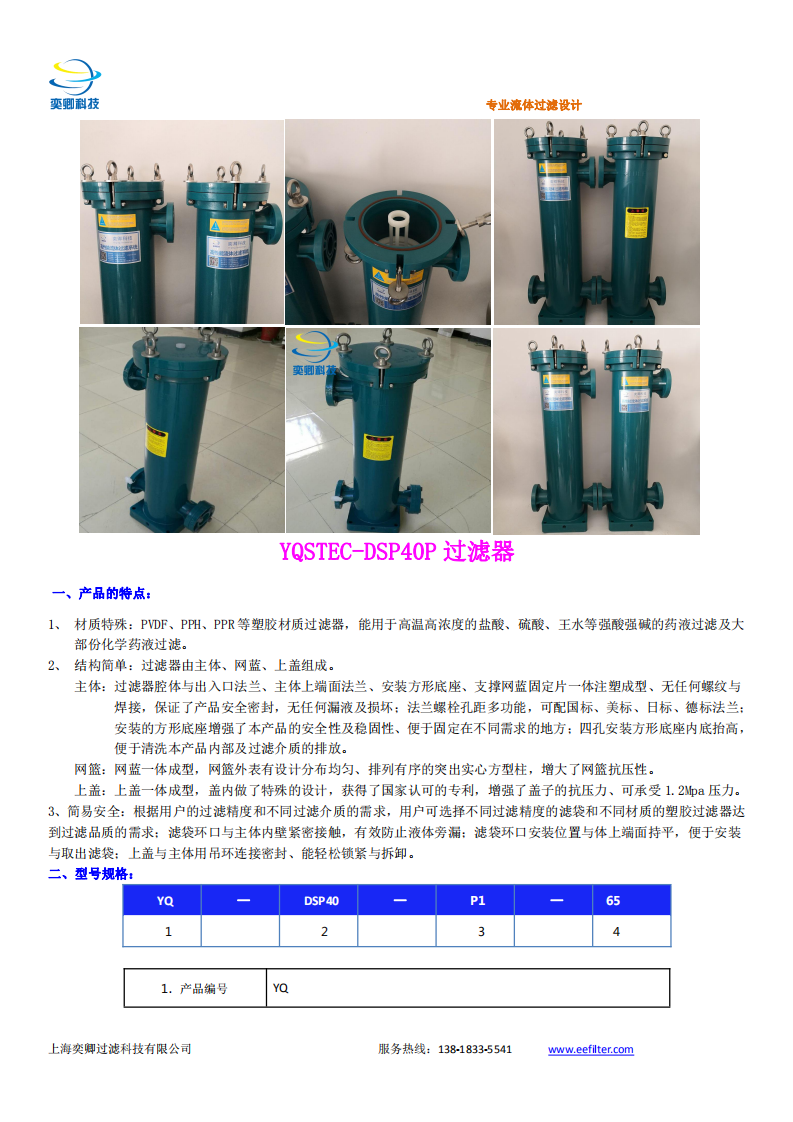 DSP40P-聚丙烯塑膠單袋平蓋PP過濾器